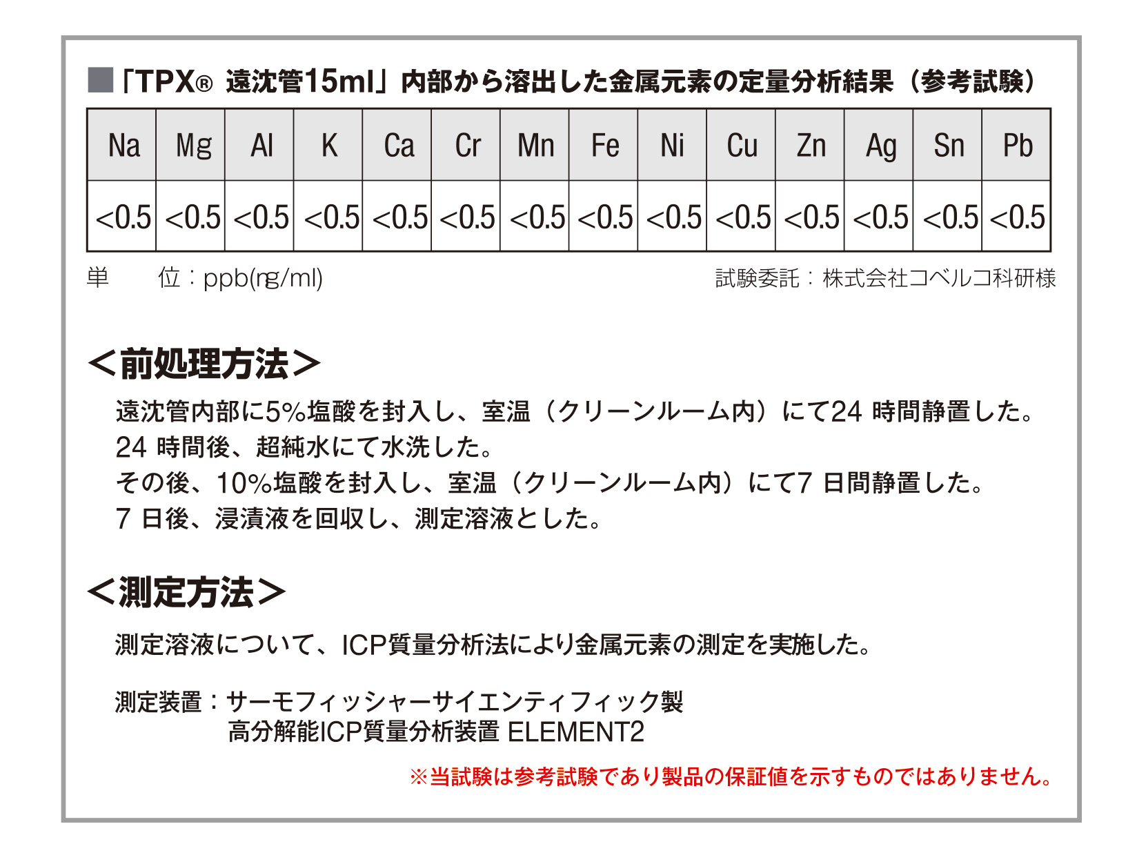 ・試料本来の品質を守るメタルフリー仕様の遠沈管。
